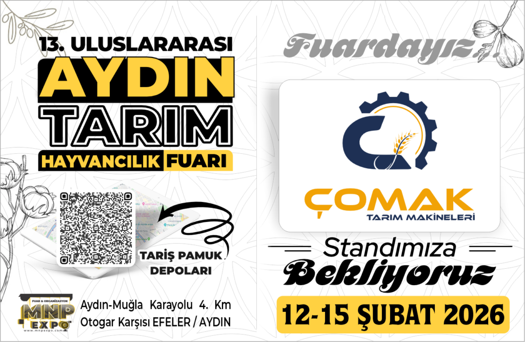 Küçükbaş Hayvan Yemlikleri, Traktör Arkası Ekipmanlar, Yem Karma Makineleri alanında hizmet veren ÇOMAK TARIM MAKİNELERİ, 12-15 Şubat 2026 tarihleri arasında 13. Uluslararası Aydın Tarım Fuarı’nda sizleri standına bekliyor.