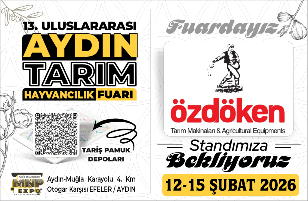 Ekim Makineleri, Hububat Mibzeri, Havalı Mibzerler, Toprak İşleme, Ekim Yatağı Hazırlama ve Çapa Makineleri Üretim alanlarında hizmet veren ÖZDÖKEN TARIM, 12-15 Şubat 2026 tarihleri arasında 13. Uluslararası Aydın Tarım Fuarı’nda sizleri standına bekliyor.