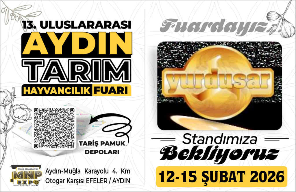Rototiller ve Rotovatörler, Bitki ve Tarla Bakım Makineleri, Biçme, Ot Toplama ve Serpme Makineleri, Toprak İşleme, Özel Üretim Tarım Aletleri alanında hizmet veren YURDUSAR, 12-15 Şubat 2026 tarihleri arasında 13. Uluslararası Aydın Tarım Fuarı’nda sizleri standına bekliyor.